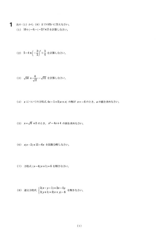 ■平成27年度入試過去問題 (一般)(数学 問題)