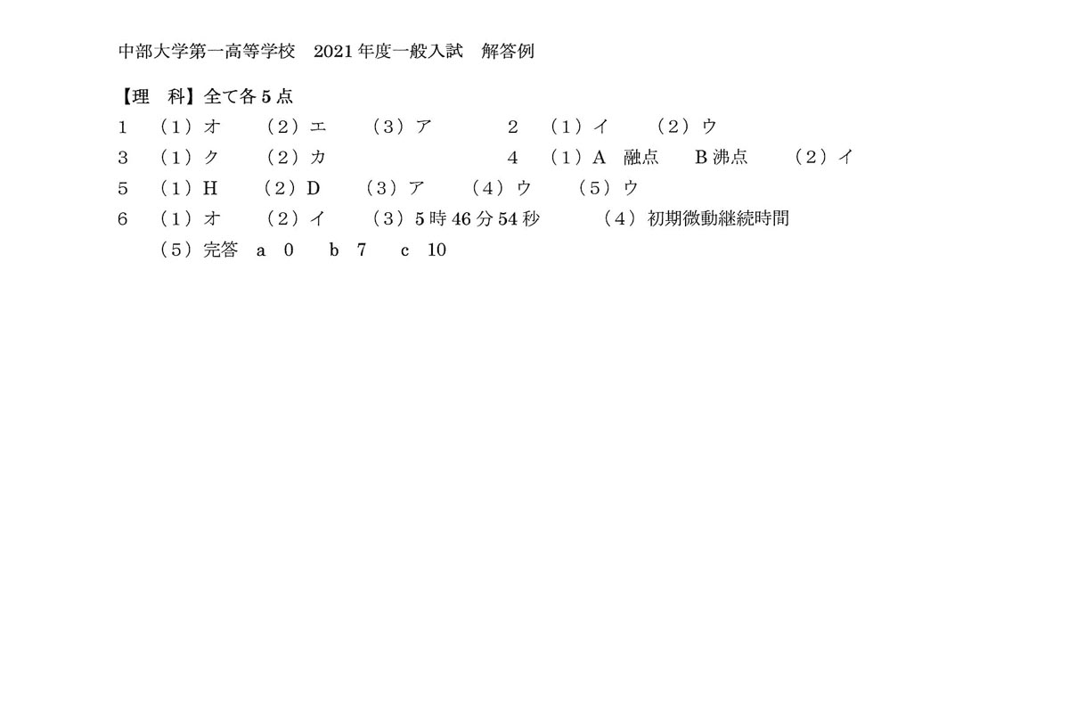 ■2021年度入試過去問題(理科 解答)