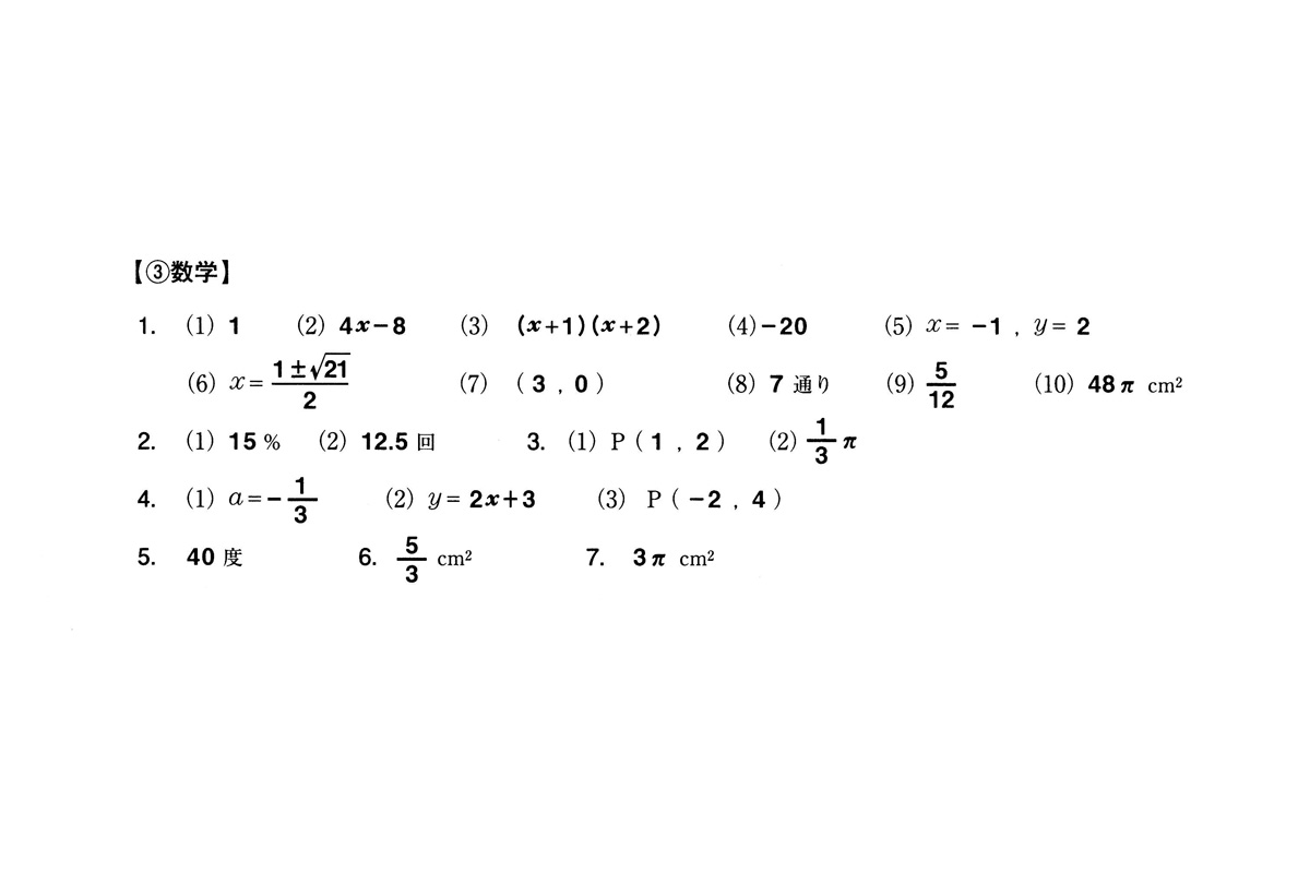 ■平成27年度入試過去問題 推薦(数学 解答)