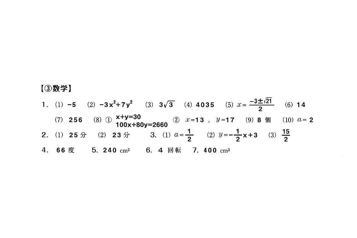 ■平成30年度入試過去問題 推薦(数学 解答)