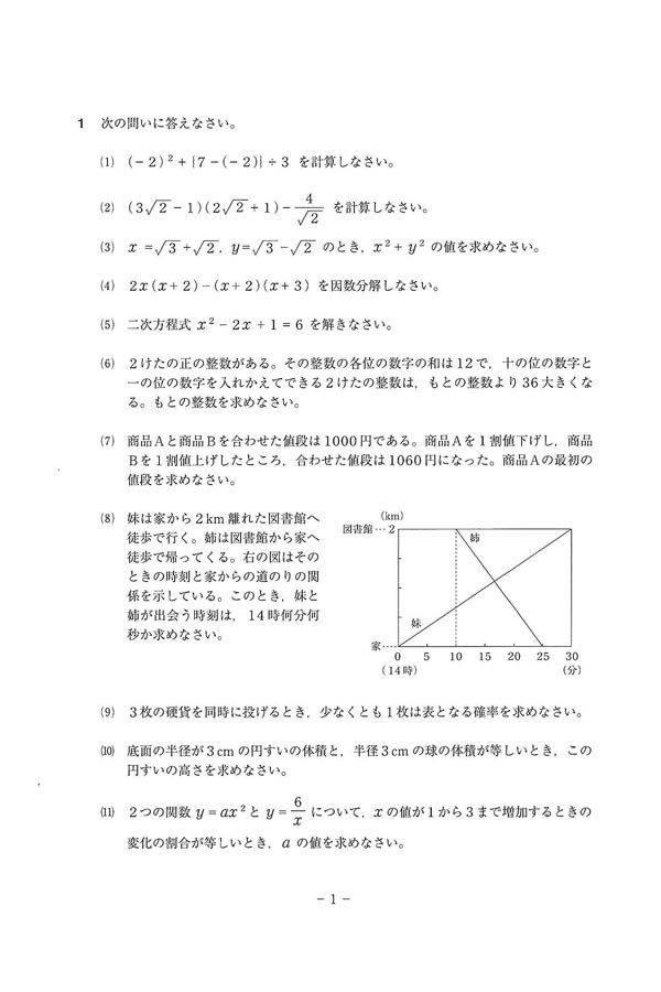 令和2年度入試過去問題 一般: 数学(問題) 英語(問題)