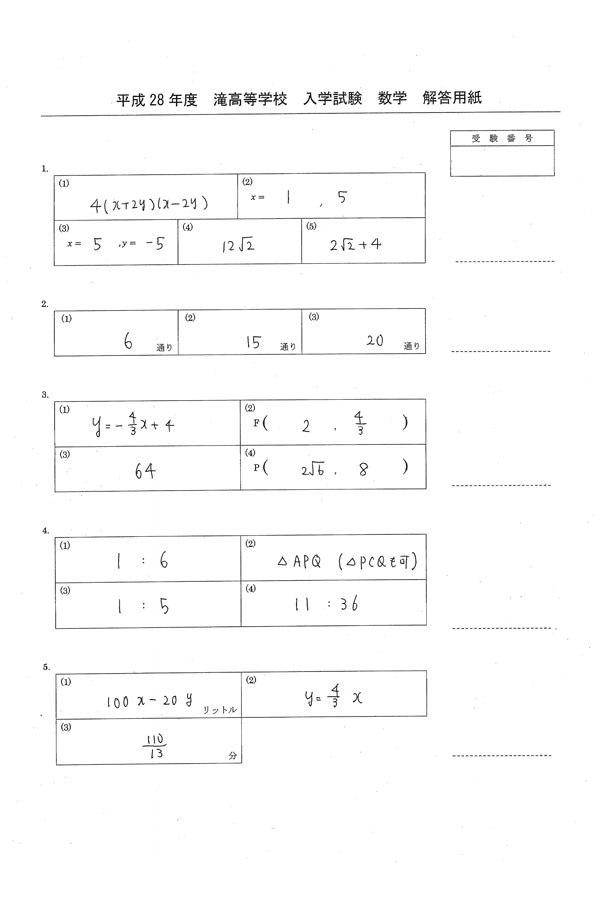 滝高等学校の入試過去問題[解答編]、資料(パンフレット)請求、入試(受験)、説明会などを掲載