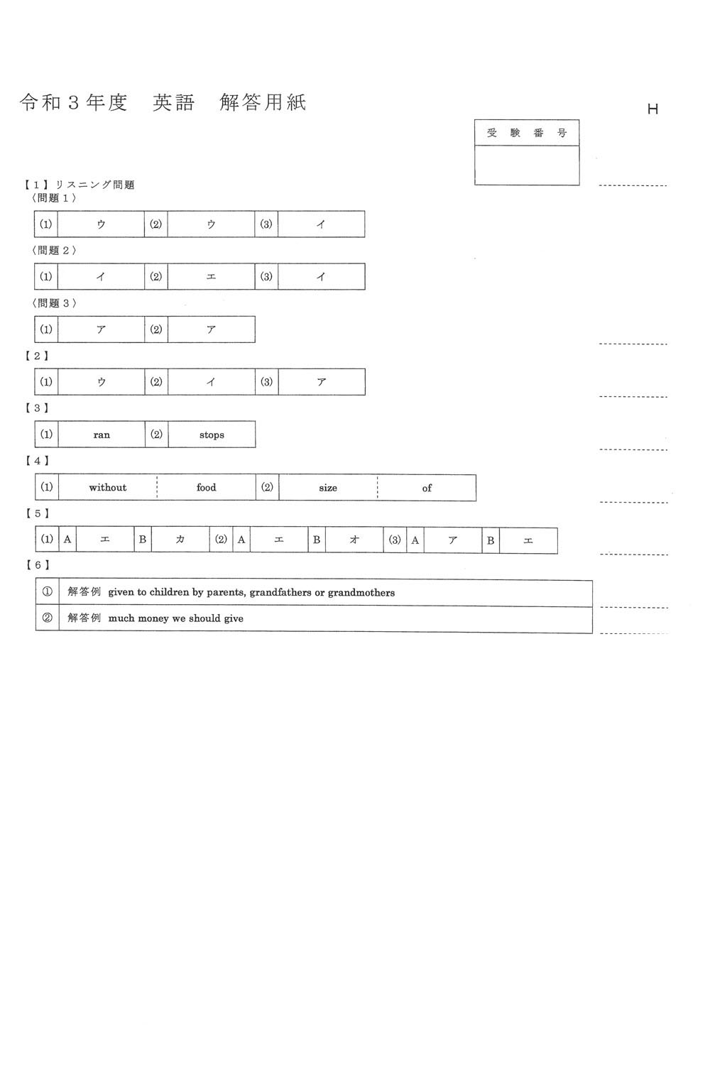 ■令和3年度入試過去問題(英語 解答)