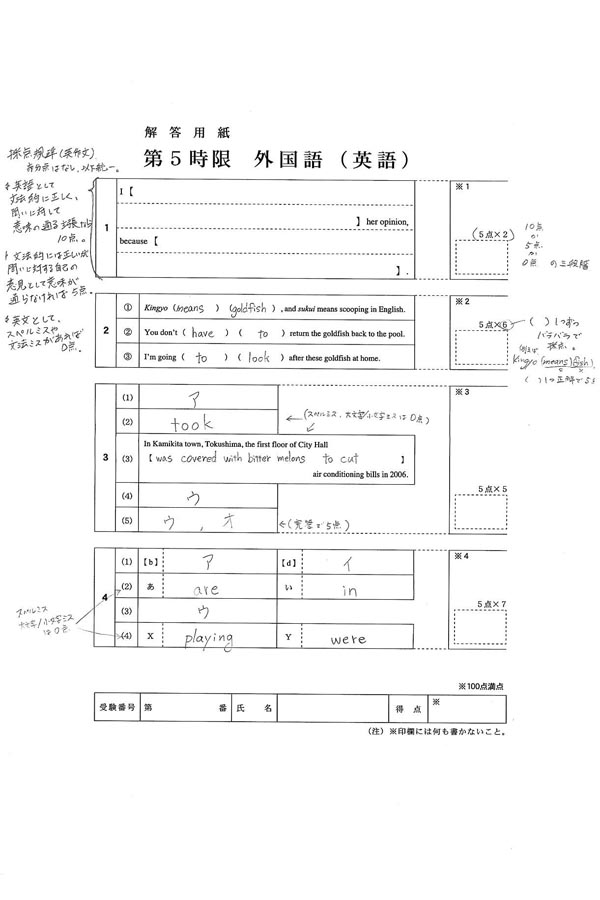 ■平成30年度入試過去問題 一般入試(英語 解答)