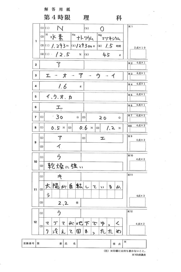 ■平成30年度入試過去問題 一般入試(理科 解答)