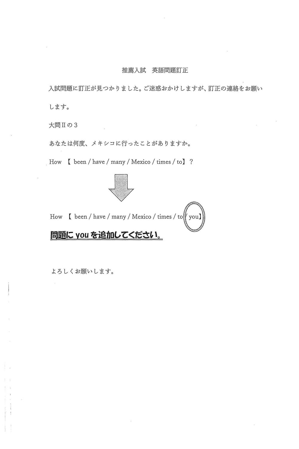■令和2年度入試過去問題 推薦入試(英語 問題)
