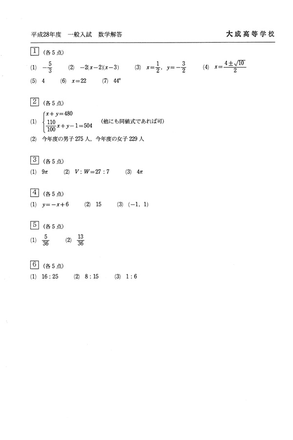 大成高等学校の入試過去問題[解答編]、資料(パンフレット)請求、入試(受験)、説明会などを掲載