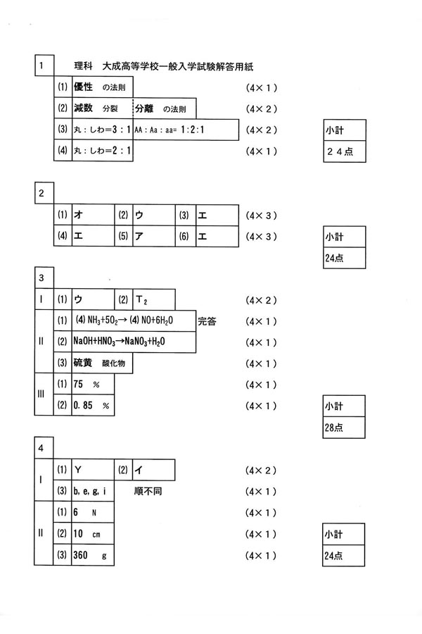 大成高等学校の入試過去問題[解答編]、資料(パンフレット)請求、入試(受験)、説明会などを掲載