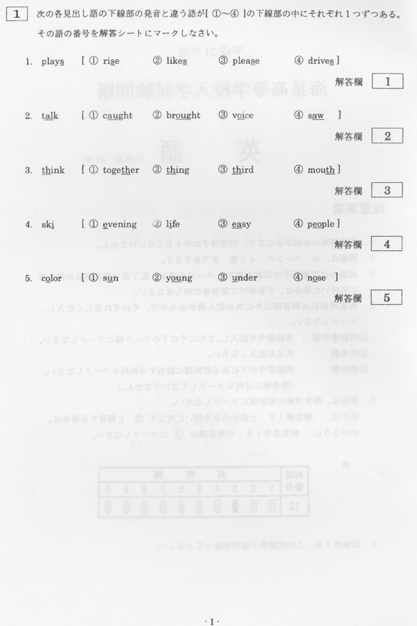 平成21年度入試過去問題: 数学(問題) 英語(問題) 理科(問題)