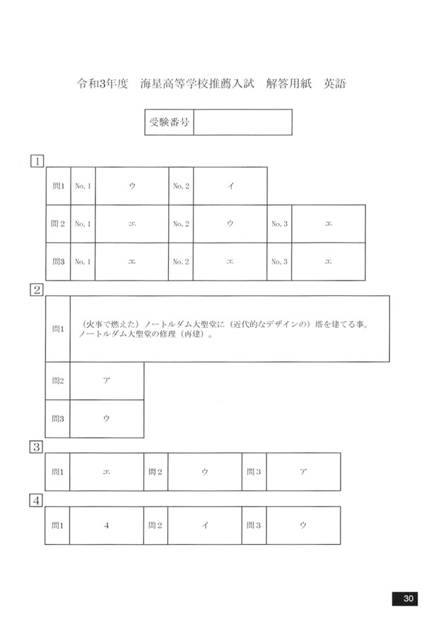 ■令和3年度入試過去問題(推薦)(英語 解答)
