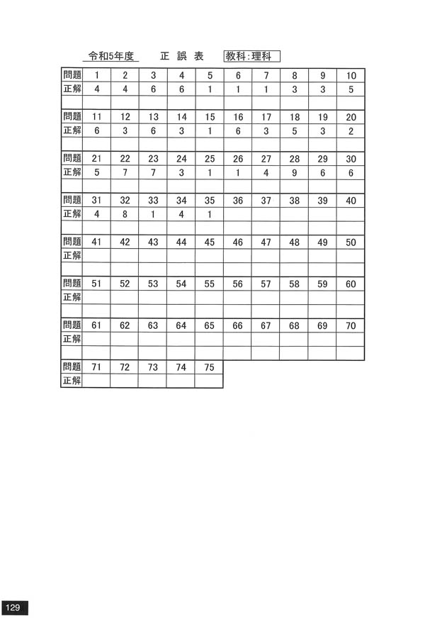 ■令和5年度入試過去問題(一般)(理科 解答)