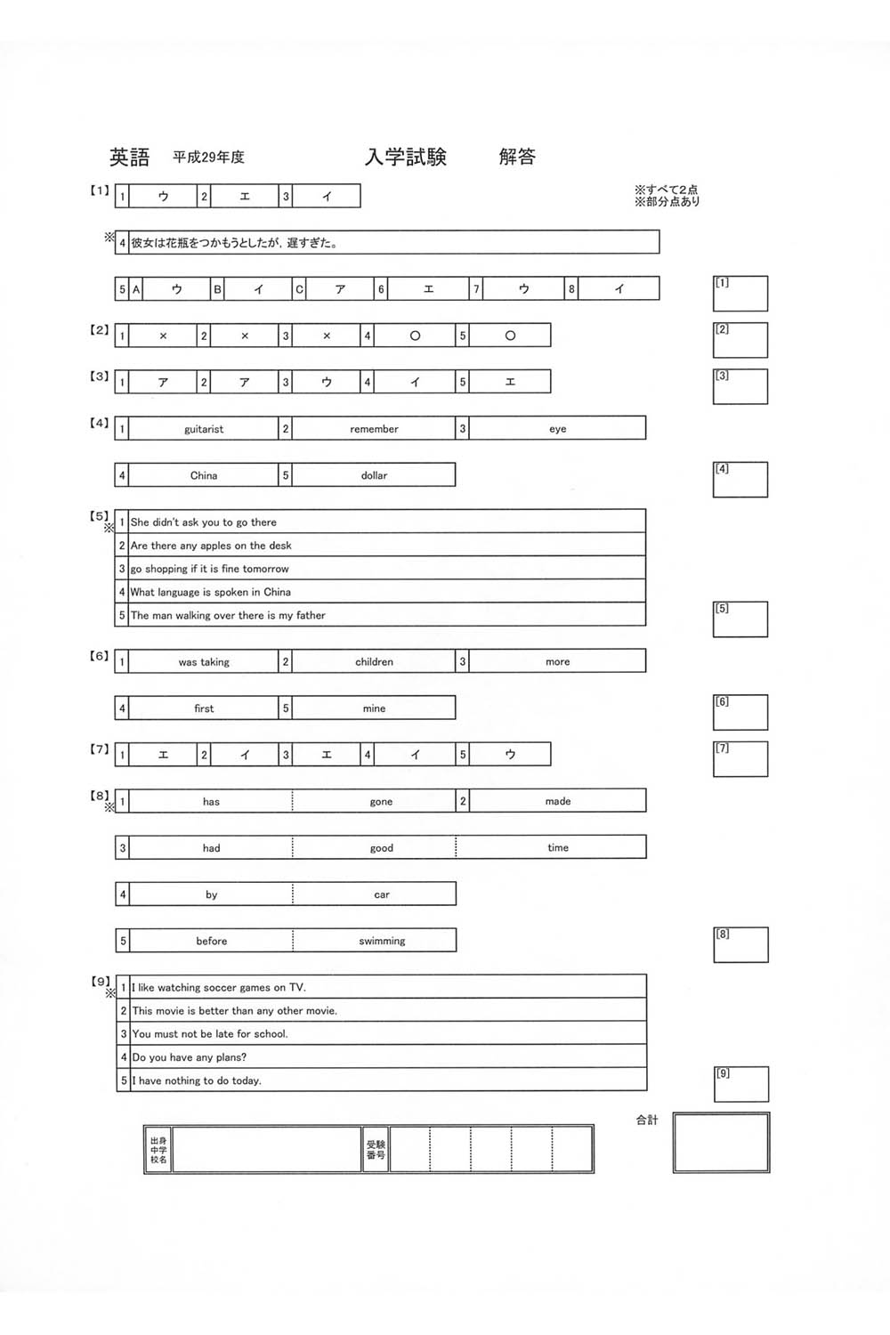 ■平成29年度入試過去問題(英語 解答)
