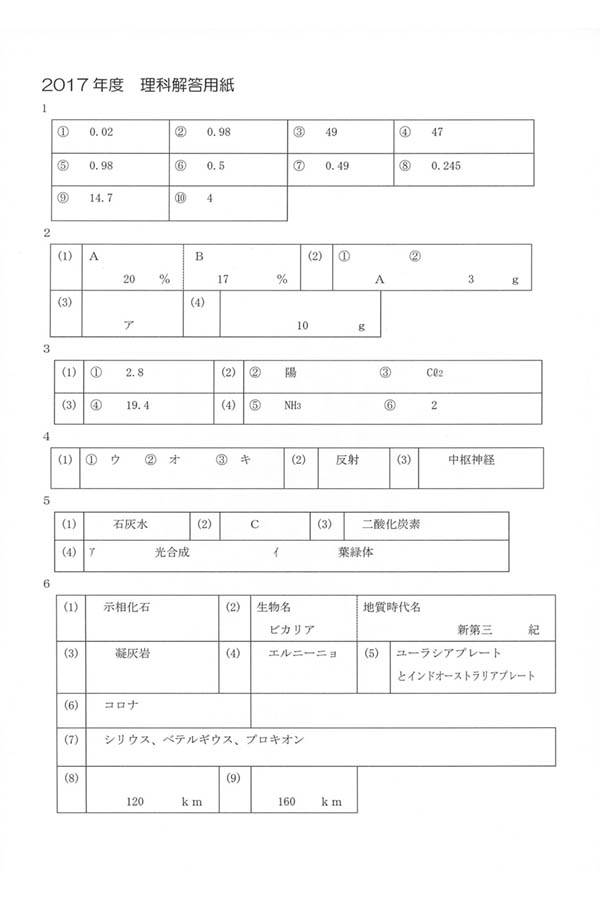 ■平成29年度入試過去問題(理科 解答)