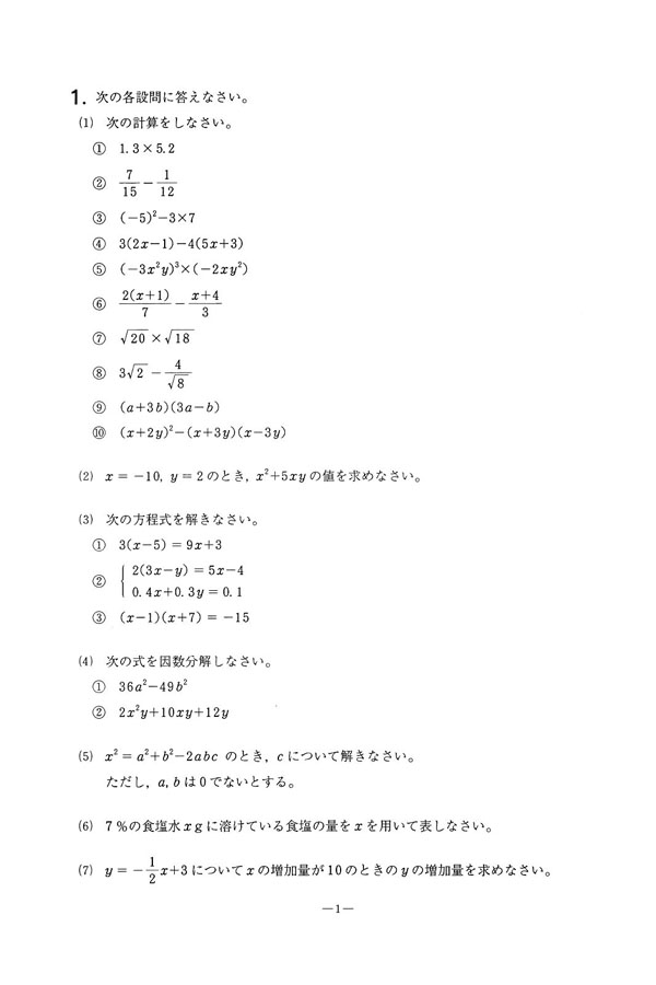 平成27年度入試過去問題: 数学(問題) 英語(問題)