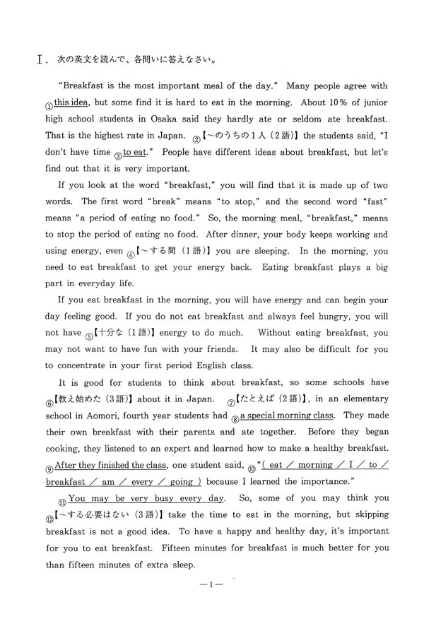 平成27年度入試過去問題: 数学(問題) 英語(問題)