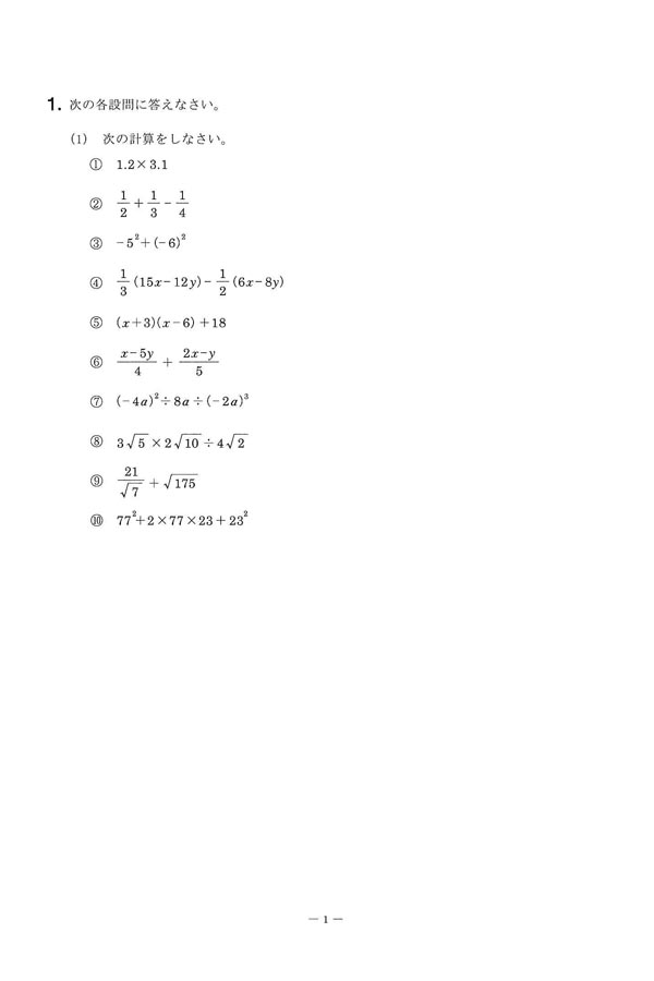 令和2年度入試過去問題: 数学(問題) 英語(問題)