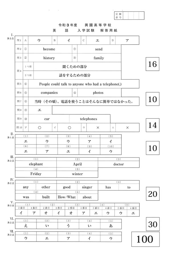 興國高等学校の入試過去問題[解答編]、資料(パンフレット)請求、入試(受験)、説明会などを掲載