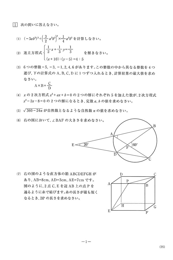 2025年度入試過去問題: 数学(問題) 英語(問題) 理科(問題)