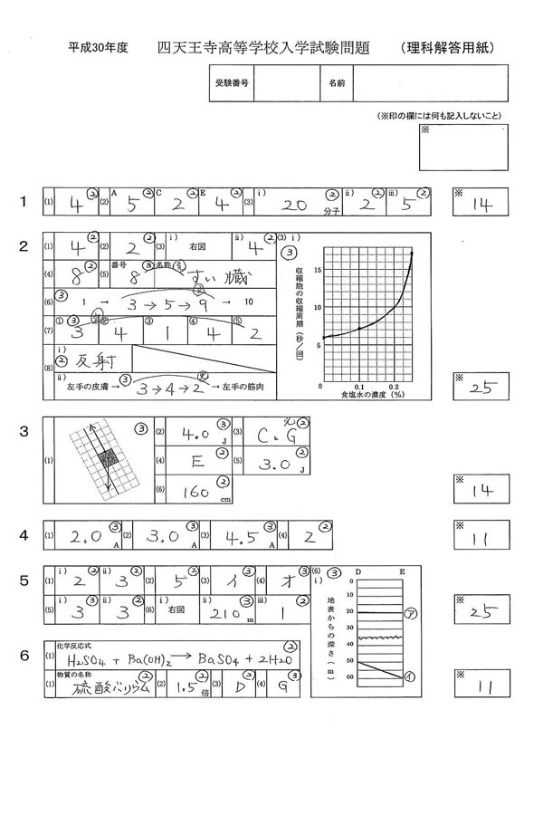 ■平成30年度入試過去問題(理科 解答)
