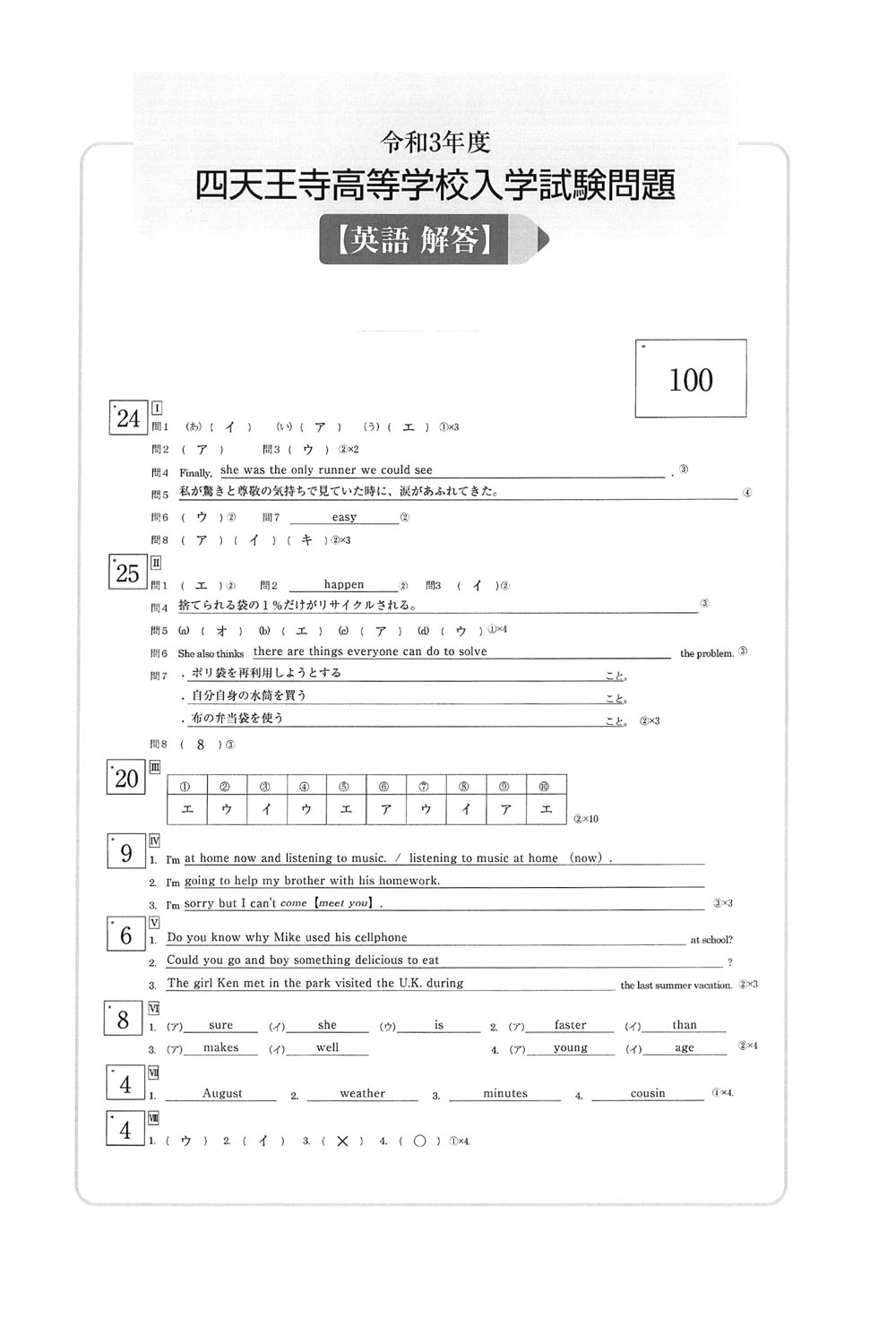 ■令和3年度入試過去問題 (英語 解答)