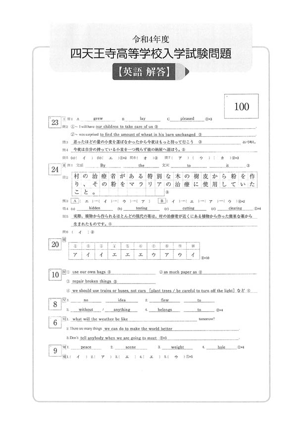 ■令和4年度入試過去問題(英語 解答)
