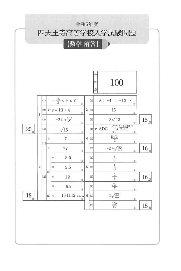 ■令和5年度入試過去問題(数学 解答)