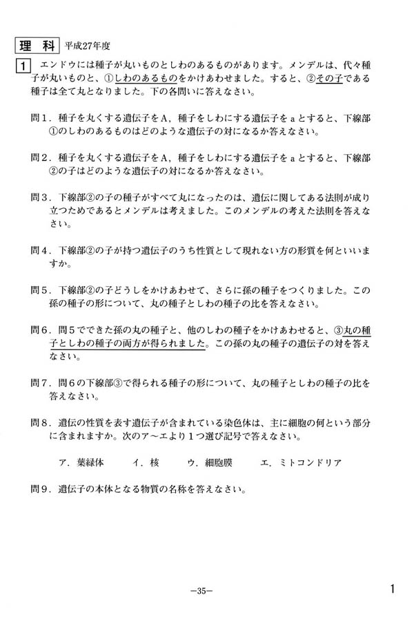 平成27年度入試過去問題: 数学(問題) 英語(問題) 理科(問題)