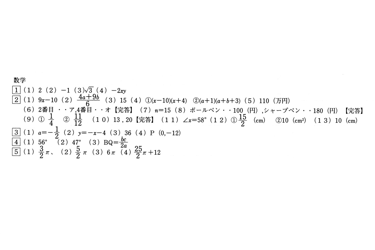 ■平成28年度入試過去問題(数学 解答)