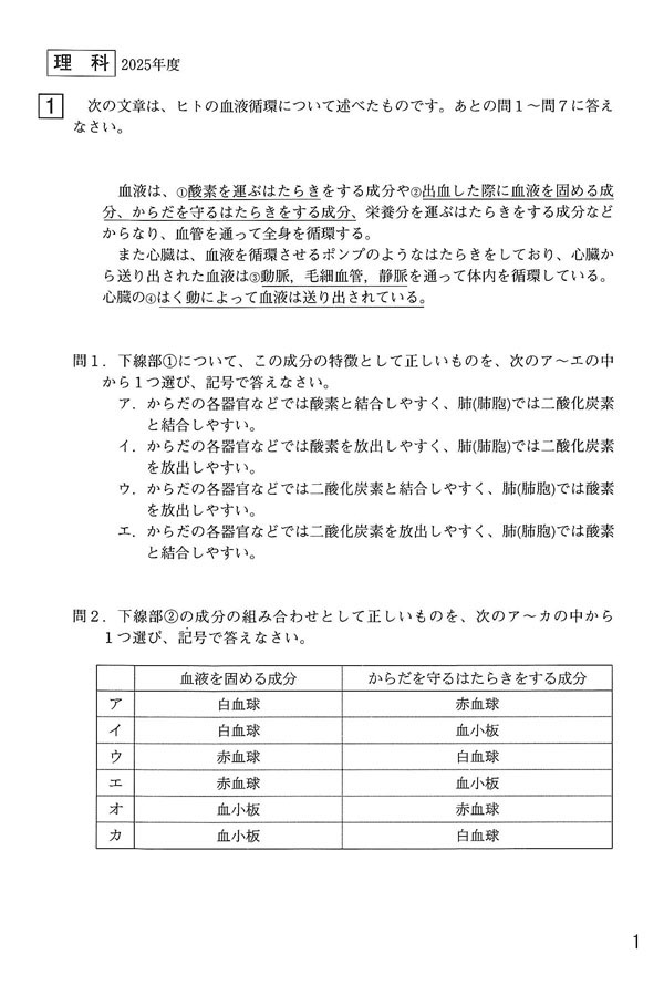 2025年度入試過去問題: 数学(問題) 英語(問題) 理科(問題)