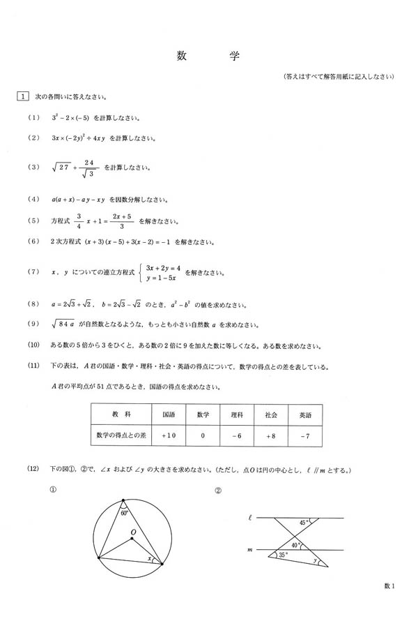 ■平成27年度入試過去問題(数学 問題)