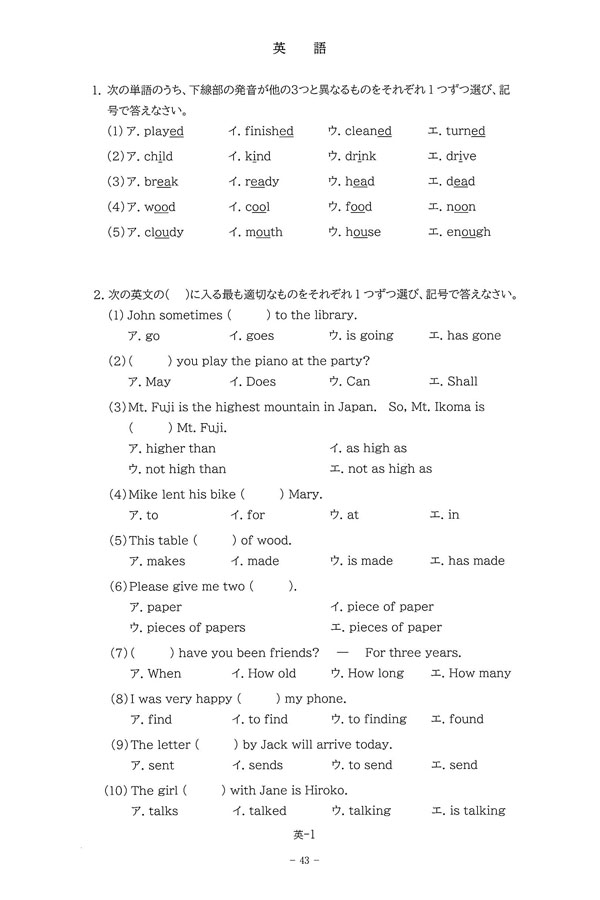 2025年度入試過去問題: 数学(問題) 英語(問題) 理科(問題)