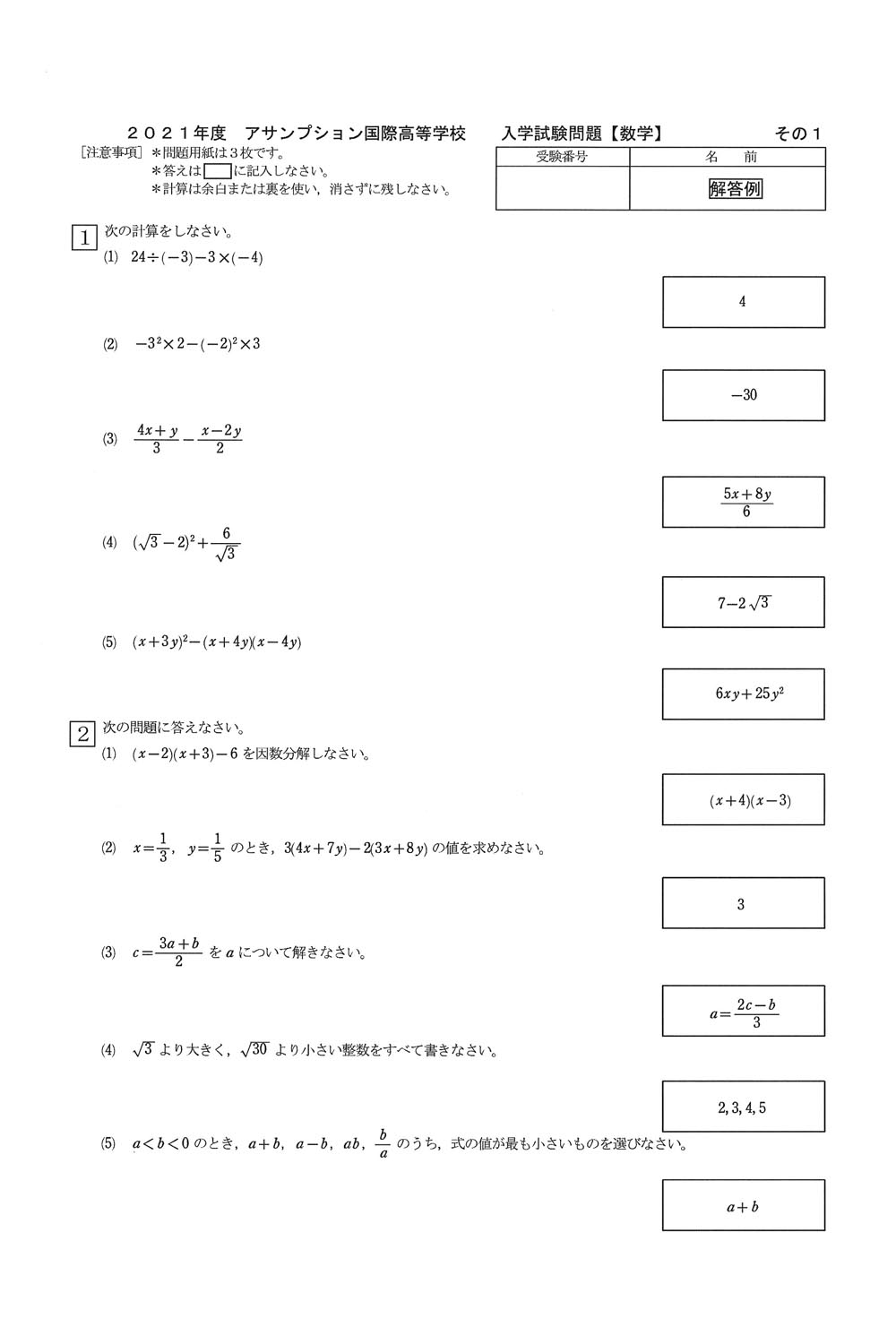 アサンプション国際高等学校の入試過去問題[解答編]、資料(パンフレット)請求、入試(受験)、説明会などを掲載