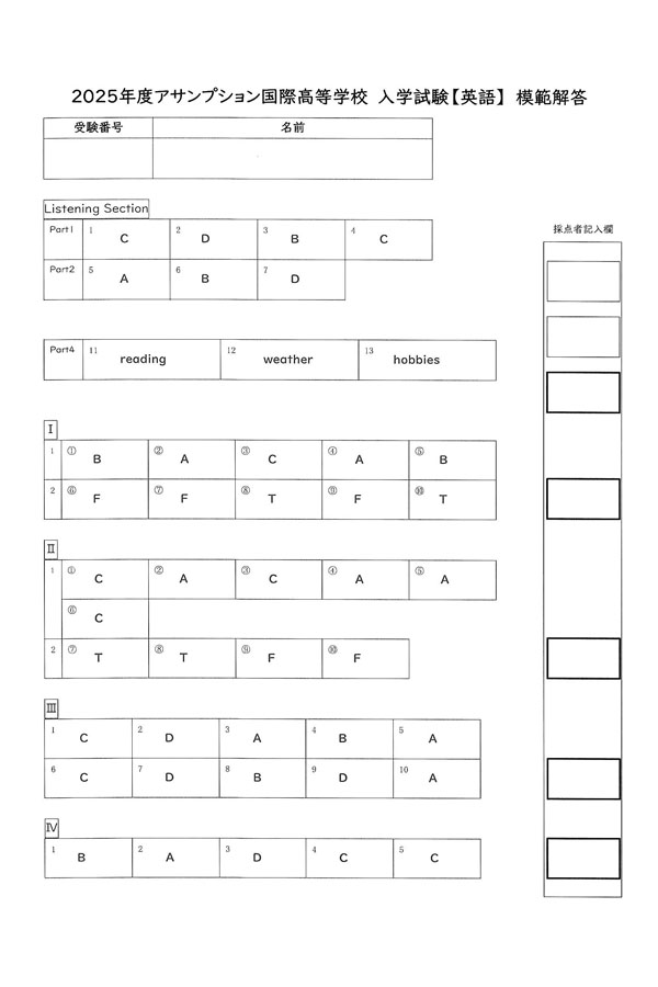 アサンプション国際高等学校の入試過去問題[解答編]、資料(パンフレット)請求、入試(受験)、説明会などを掲載