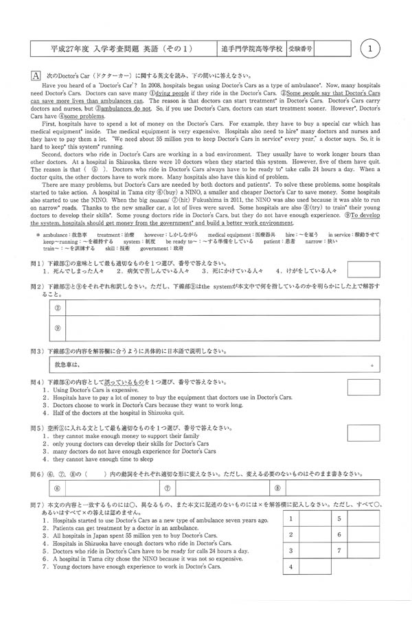 ※掲載している入試過去問題の画像は全て、各学校の了承を得て掲載しております。