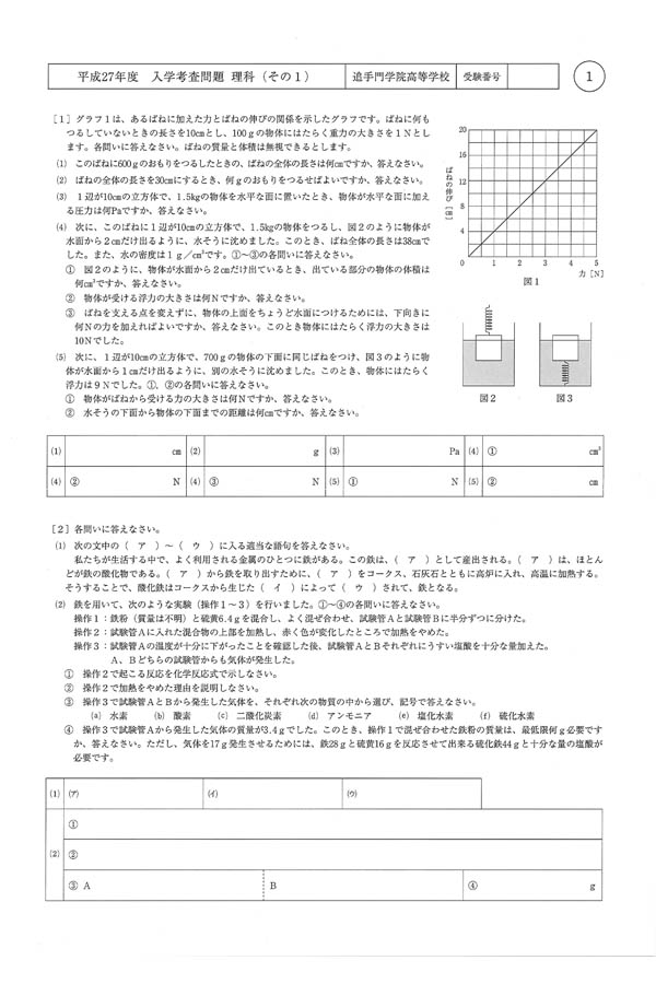 平成27年度入試過去問題: 数学(問題) 英語(問題) 理科(問題)