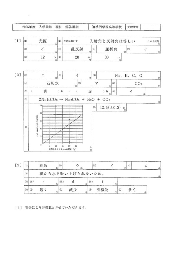 ■2025年度入試過去問題(理科 解答)