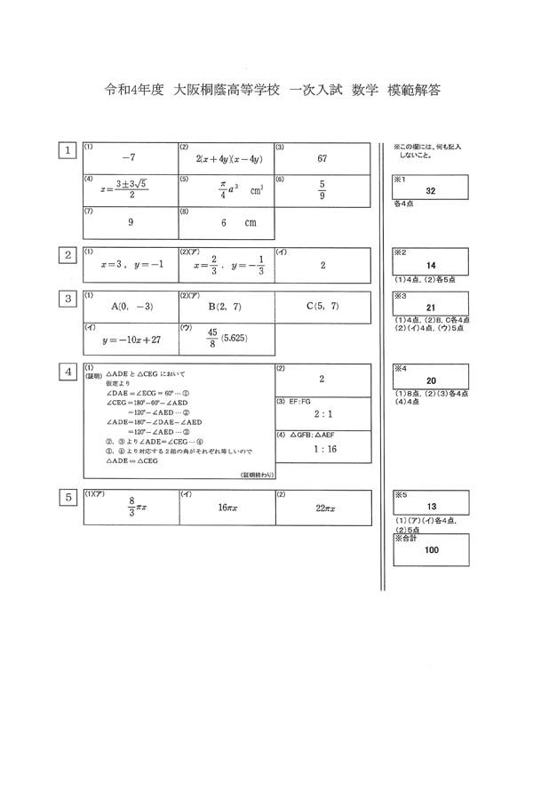 ■令和4年度入試過去問題(数学 解答)