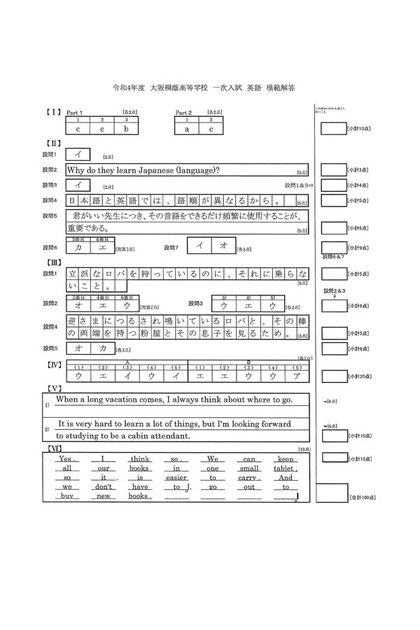 大阪桐蔭高等学校の入試過去問題[解答編]、資料(パンフレット)請求、入試(受験)、説明会などを掲載