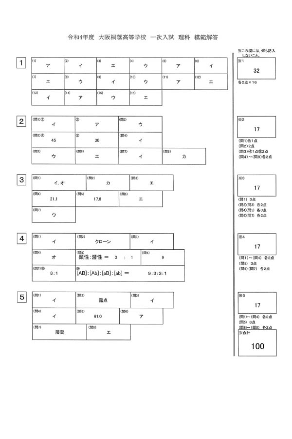■令和4年度入試過去問題(理科 解答)