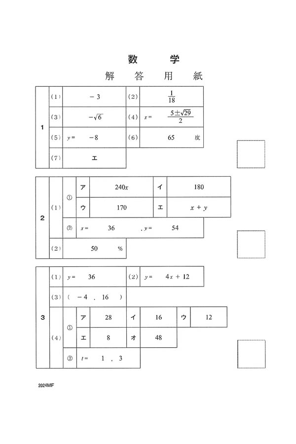 ■2024年度入試過去問題 (数学 解答)