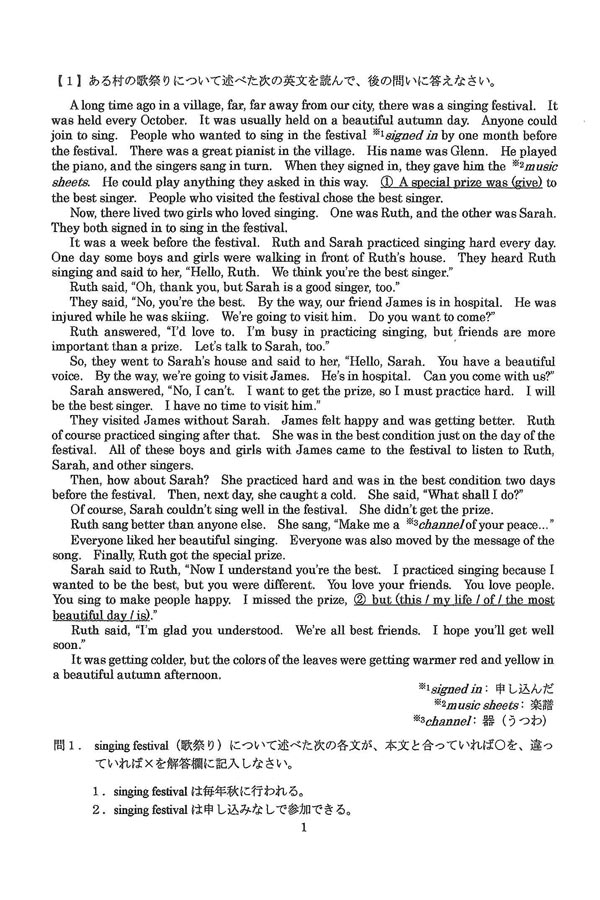 2020年度入試過去問題: 数学(問題) 英語(問題)