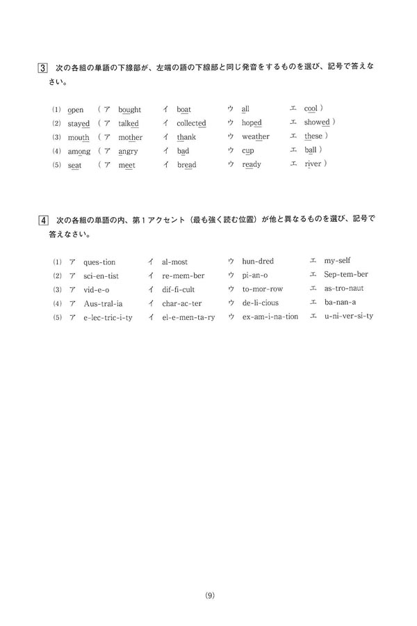 2020年度入試過去問題: 数学(問題) 英語(問題)