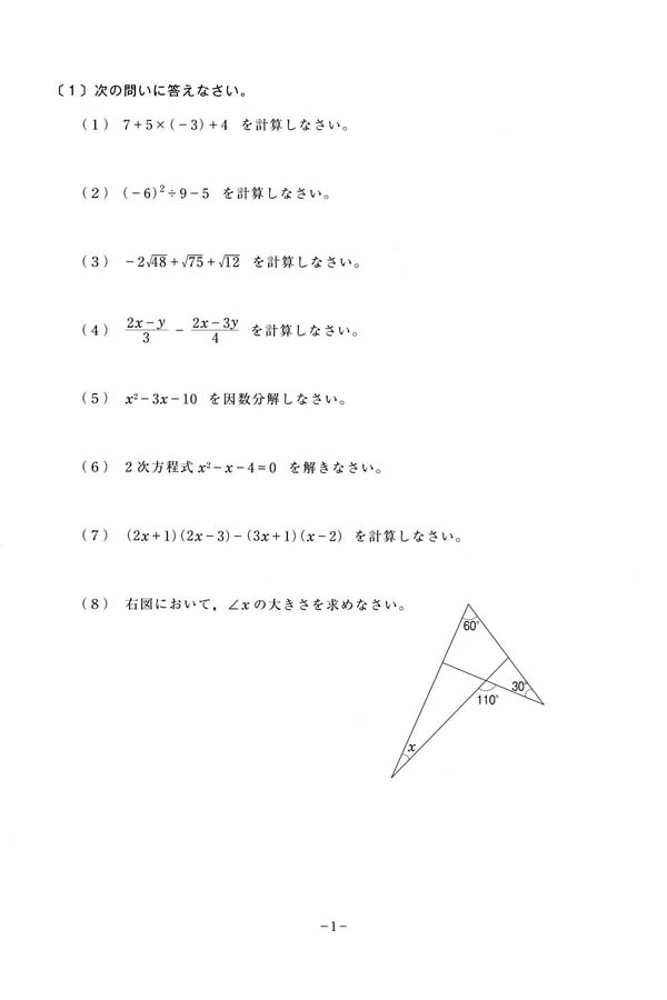 ■平成27年度入試過去問題 前期(数学 問題)