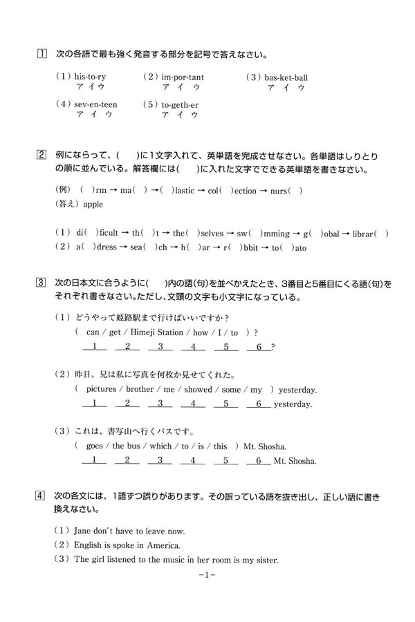 ■平成27年度入試過去問題 前期(英語 問題)