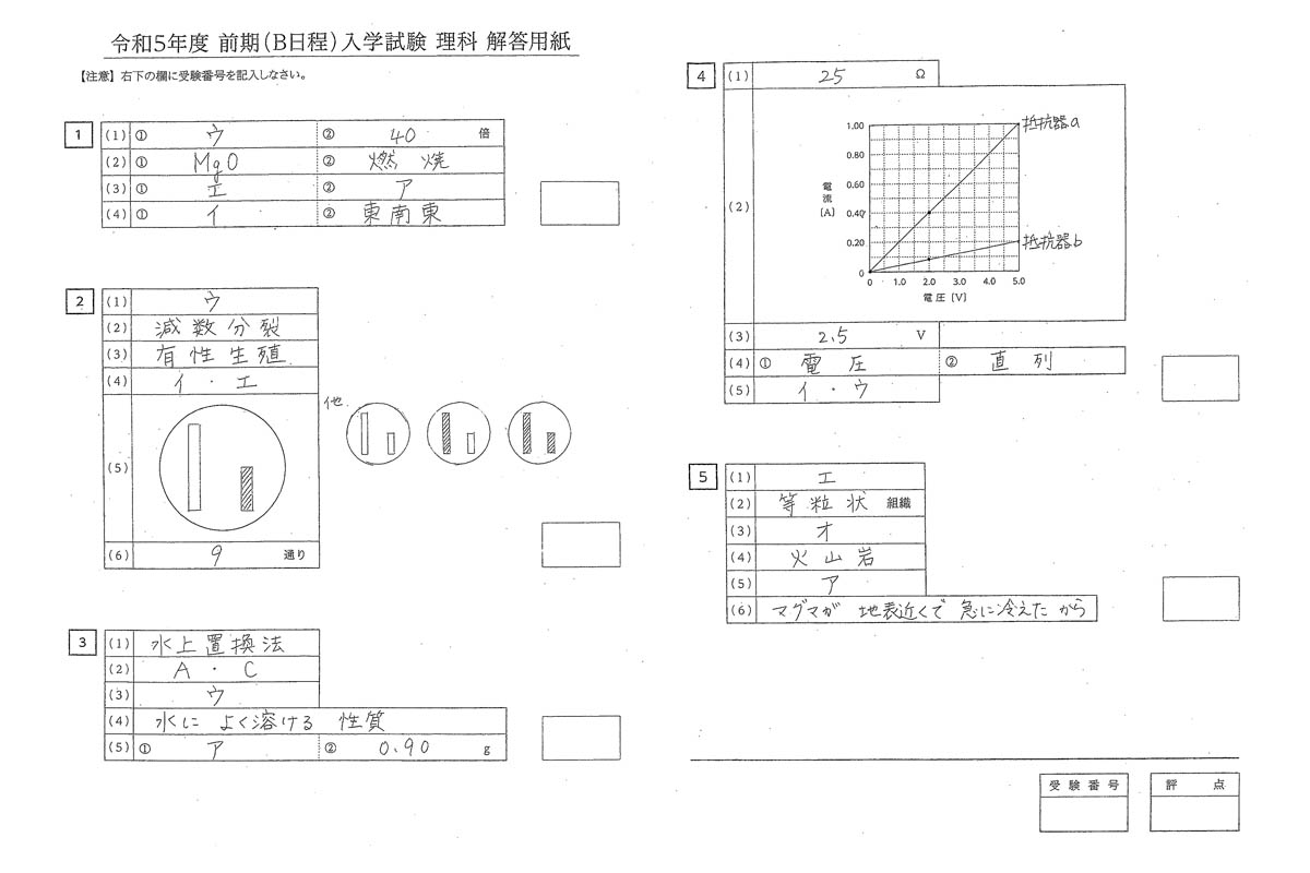 ■令和5年度入試過去問題 前期(B日程)(理科 解答)