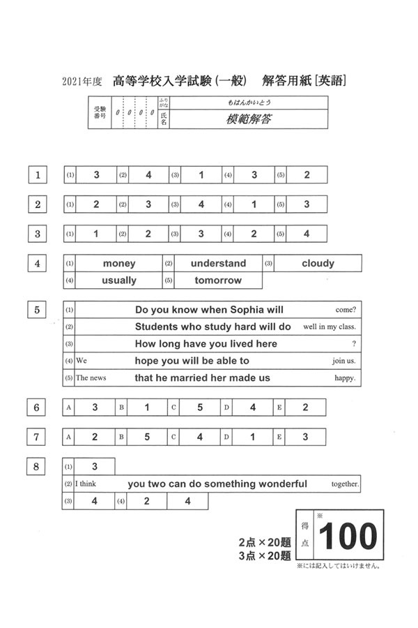 ■2021年度入試過去問題  一般(英語 解答)