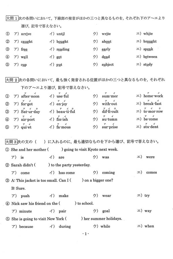 平成27年度入試過去問題: 数学(問題) 英語(問題)