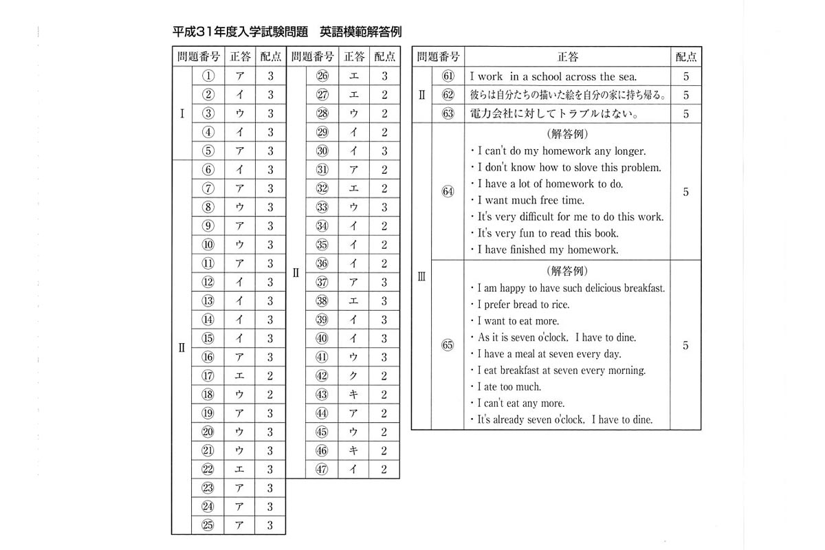 ■平成31年度入試過去問題(英語 解答)