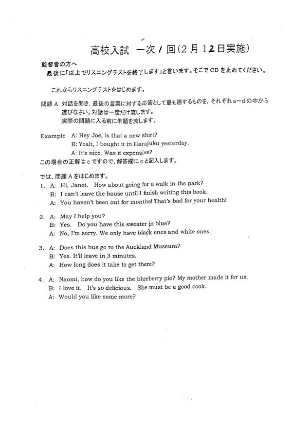 ■平成27年度入試過去問題 第1回(英語 問題)