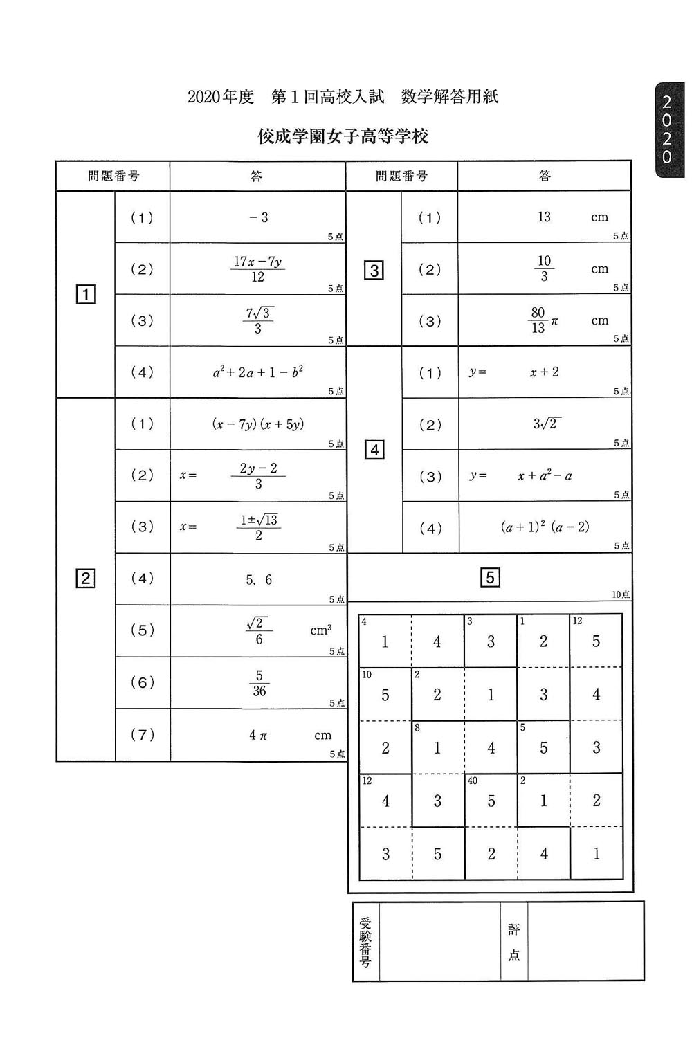 ■2020年度入試過去問題(数学 解答)
